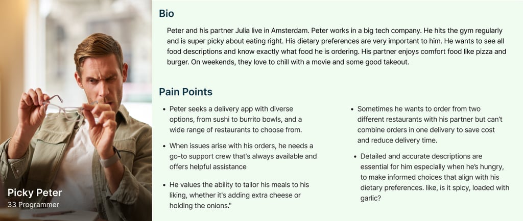 At this step we created about 40 user stories based on our personas to explain the issues and challenges better. These stories provide insight into how different users interact with the Lieferando app and highlight the specific challenges they face.
