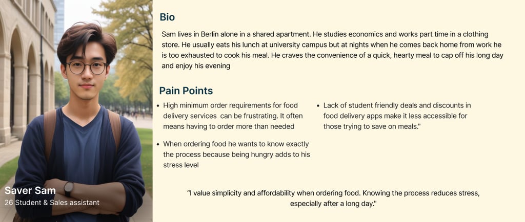 After a long day at work. All she wanted was a warm meal to enjoy at home. She opened the app, but endless scrolling through disorganized menus and lack of detailed descriptions made choosing a meal frustrating. By the time she finally navigated the confusing interface to place her order, she realized she had missed out on great discounts hidden within the app. With no reliable support to turn to, she was left hungry and stressed, wondering if there was a better way to end this day.